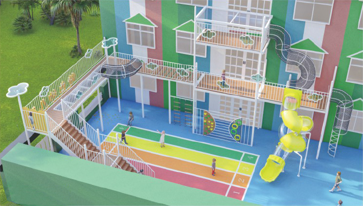 像水一樣流動(dòng)的外形,蜿蜒數(shù)十米;高低起伏的半空架構(gòu),新穎靈魂的藝術(shù)風(fēng)格,盤旋回繞的資格立交橋設(shè)計(jì),斑斕五色與金屬色的碰撞,讓此項(xiàng)目猶如一幅藝術(shù)作品,回歸自然,超脫于游樂(lè)拓展設(shè)備之上,矗立于林立高樓之中。