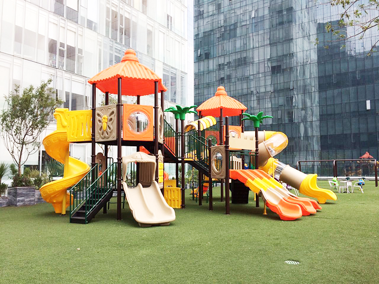 設(shè)備集多元游樂功能于一體:多條不同坡度的滑梯滿足多樣滑行體驗(yàn),攀爬網(wǎng)、鉆行通道與互動(dòng)面板可鍛煉孩子的肢體協(xié)調(diào)力與探索欲,開闊的平臺(tái)設(shè)計(jì)也為社交互動(dòng)提供了空間。它采用環(huán)保耐用的戶外材質(zhì),全圓角安全設(shè)計(jì)保障游玩安全,適合安置在社區(qū)綠地、商業(yè)區(qū)戶外、幼兒園等場(chǎng)景,既能讓孩子在充滿熱帶氣息的游樂場(chǎng)景中釋放活力,也能憑借明快的色彩成為場(chǎng)地的吸睛亮點(diǎn)。