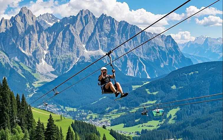 游客穿戴專(zhuān)業(yè)安全裝備后,從高處順勢(shì)滑行,可體驗(yàn)御風(fēng)飛行的失重感與速度感,同時(shí) 360° 飽覽雪山群峰、層疊森林與山谷村落的全景,實(shí)現(xiàn) “刺激探險(xiǎn) + 極致觀景” 的雙重體驗(yàn)。設(shè)備采用專(zhuān)業(yè)級(jí)耐磨鋼索、五點(diǎn)式安全帶與多重緩沖裝置,搭配定期安全檢測(cè)機(jī)制,全方位保障游玩安全。
