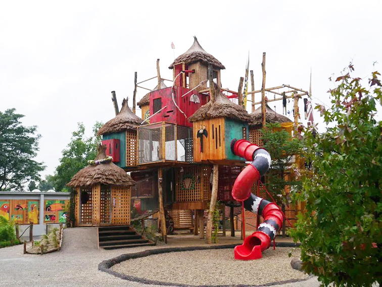 這是一款充滿原始部落風(fēng)情的室外無動(dòng)力拓展游樂設(shè)備,以非洲部落樹屋為設(shè)計(jì)靈感,融合了多層木質(zhì)平臺(tái)、茅草屋頂與螺旋滑梯等元素。主體采用環(huán)保防腐實(shí)木搭建部落式樹屋群,搭配天然茅草屋頂與玻璃鋼滑梯,既還原了部落的質(zhì)樸質(zhì)感,又保障了游玩的安全性與趣味性。設(shè)備集攀爬、穿越、滑行、探索于一體,適用于動(dòng)物園、主題樂園、研學(xué)基地等場(chǎng)景,讓孩子們?cè)诔两降牟柯涮诫U(xiǎn)中,鍛煉體能、勇氣與想象力,感受原始叢林與部落文化的獨(dú)特魅力。