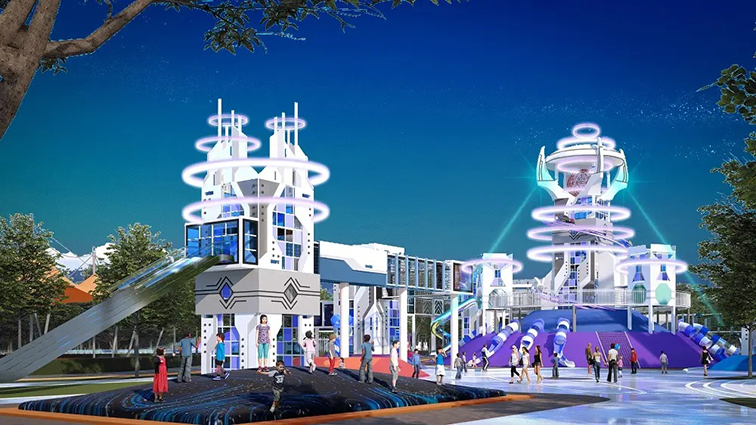 這是一款充滿未來科技感的大型室外拓展游樂設(shè)備,以星際探索與賽博城市為設(shè)計(jì)靈感,融合了未來感塔樓、高速滑梯、環(huán)形光效裝置與互動(dòng)地面等多元體驗(yàn)場(chǎng)景。主體采用環(huán)保金屬框架與玻璃鋼打造未來感建筑造型,搭配玻璃幕墻與 LED 燈光系統(tǒng),既保障了結(jié)構(gòu)穩(wěn)固與游玩安全,又營造出沉浸式的星際探險(xiǎn)氛圍。設(shè)備集高速滑行、高空探索、互動(dòng)體驗(yàn)于一體,適用于科技主題樂園、城市文旅綜合體、研學(xué)基地等場(chǎng)景,讓游客在未來感十足的環(huán)境中,盡情體驗(yàn)星際躍遷的刺激與樂趣,同時(shí)鍛煉勇氣、探索精神與空間感知能力,是科技與游樂完美融合的創(chuàng)新之作。