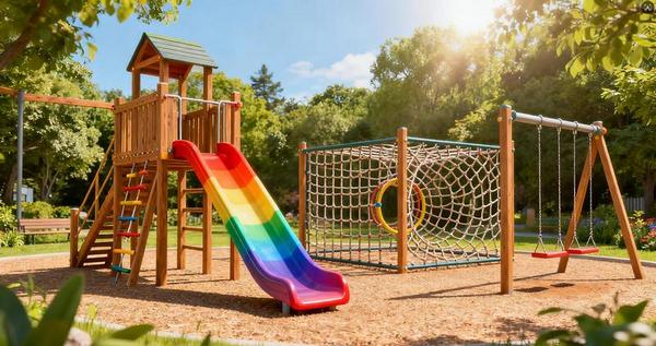 包括螺旋滑梯、平衡木或蹺蹺板,利用重力與身體控制實(shí)現(xiàn)趣味互動(dòng)。例如,彩虹滑梯以鮮艷色彩吸引學(xué)生參與,而平衡木設(shè)計(jì)則融入自然元素(如木質(zhì)樁柱),在提升平衡感的同時(shí),營造親近自然的氛圍。