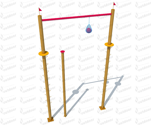2、橫梁上方下垂一個繩網,繩網中放置一皮球