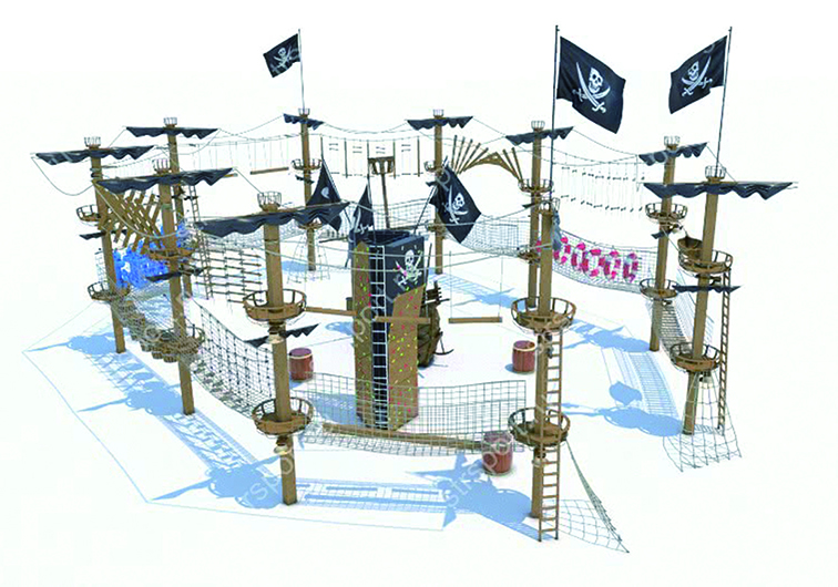 • 這是一款沉浸式海盜主題室外拓展游樂設(shè)備,以經(jīng)典海盜船為設(shè)計(jì)靈感,融合了木質(zhì)桅桿、網(wǎng)陣攀爬、攀巖挑戰(zhàn)與骷髏旗等標(biāo)志性元素,打造出充滿冒險(xiǎn)氛圍的海盜世界。主體采用環(huán)保防腐實(shí)木搭建桅桿與平臺(tái),搭配高強(qiáng)度尼龍網(wǎng)陣與玻璃鋼攀巖墻,既還原了海盜船的復(fù)古質(zhì)感,又保障了結(jié)構(gòu)穩(wěn)固與游玩安全。設(shè)備集攀爬穿越、平衡挑戰(zhàn)、親子互動(dòng)于一體,適用于主題樂園、親子景區(qū)、研學(xué)基地等場(chǎng)景,讓孩子們?cè)诔两降暮1I探險(xiǎn)中鍛煉體能、勇氣與團(tuán)隊(duì)協(xié)作能力,開啟一段充滿驚喜的航海冒險(xiǎn)之旅。